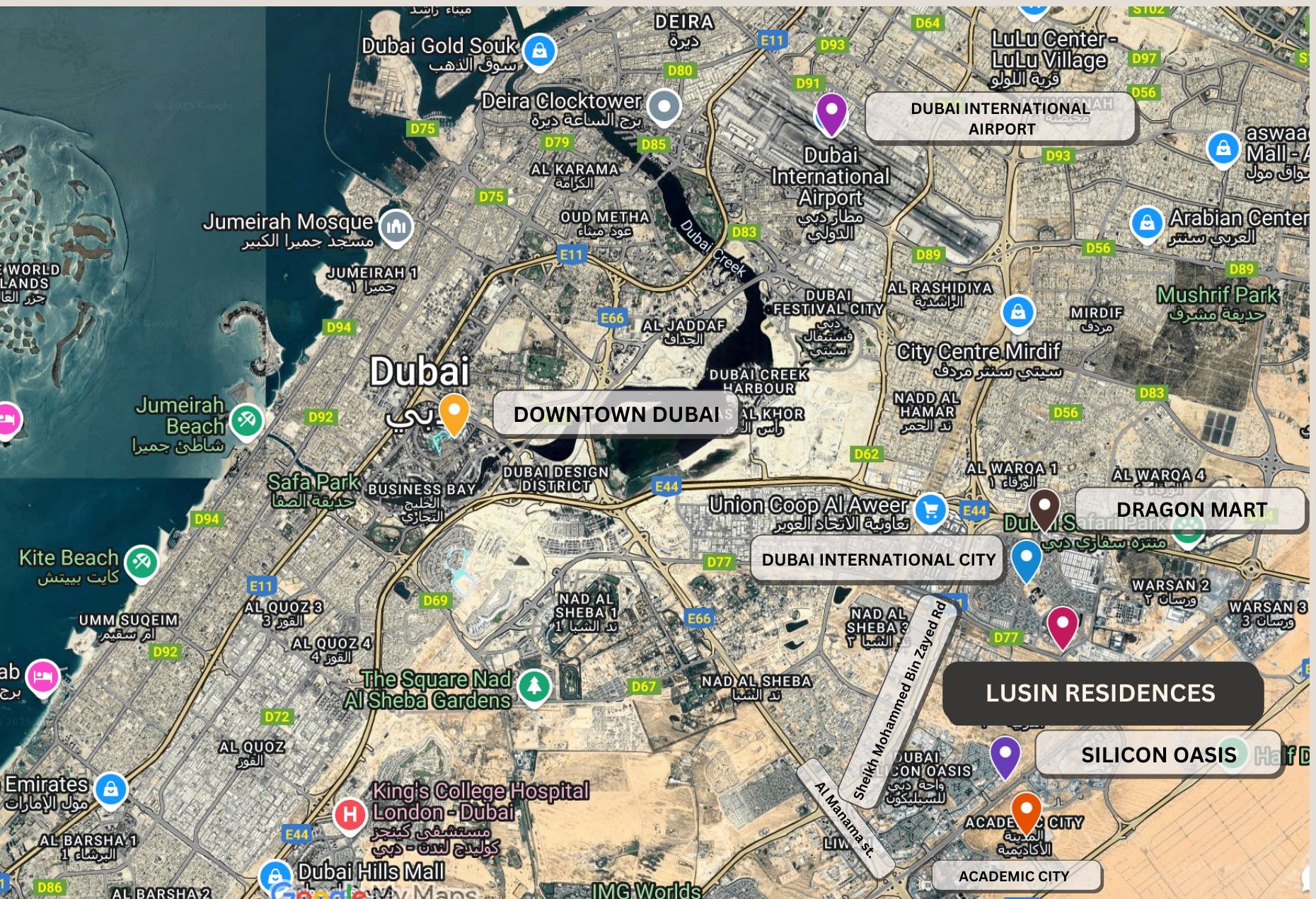 At Lusin Residences by Ermax Development, life is designed for ease and convenience. With seamless access to Dubai’s key destinations such as Dubai International Airport, Academic City, Downtown Dubai, Dubai World Trade Centre, Dubai Silicon Oasis, and major malls such as Dragon Mart, City Centre Mirdif, Dubai Festival City, and Dubai Mall, residents can enjoy a lifestyle where every journey is effortless and every day is enriched with convenience.