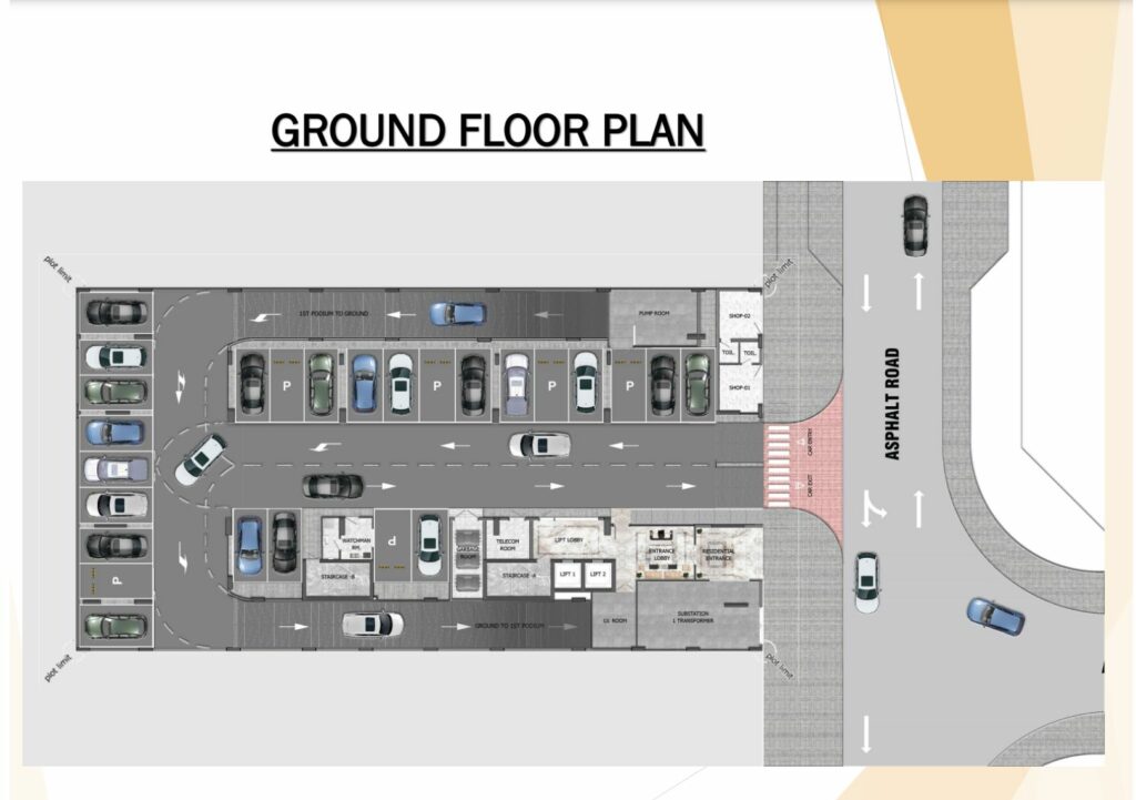 Discover this modern mixed-use development featuring a thoughtfully designed layout comprising a Ground Floor, Parking, and 7 Floors, seamlessly integrating residential and retail spaces.